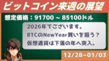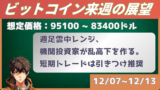 来週のビットコイン想定価格レンジは108500ドルから97000ドルです。ちなみに現在の価格は101900ドルで、先週から8900ドル安。オワタ。