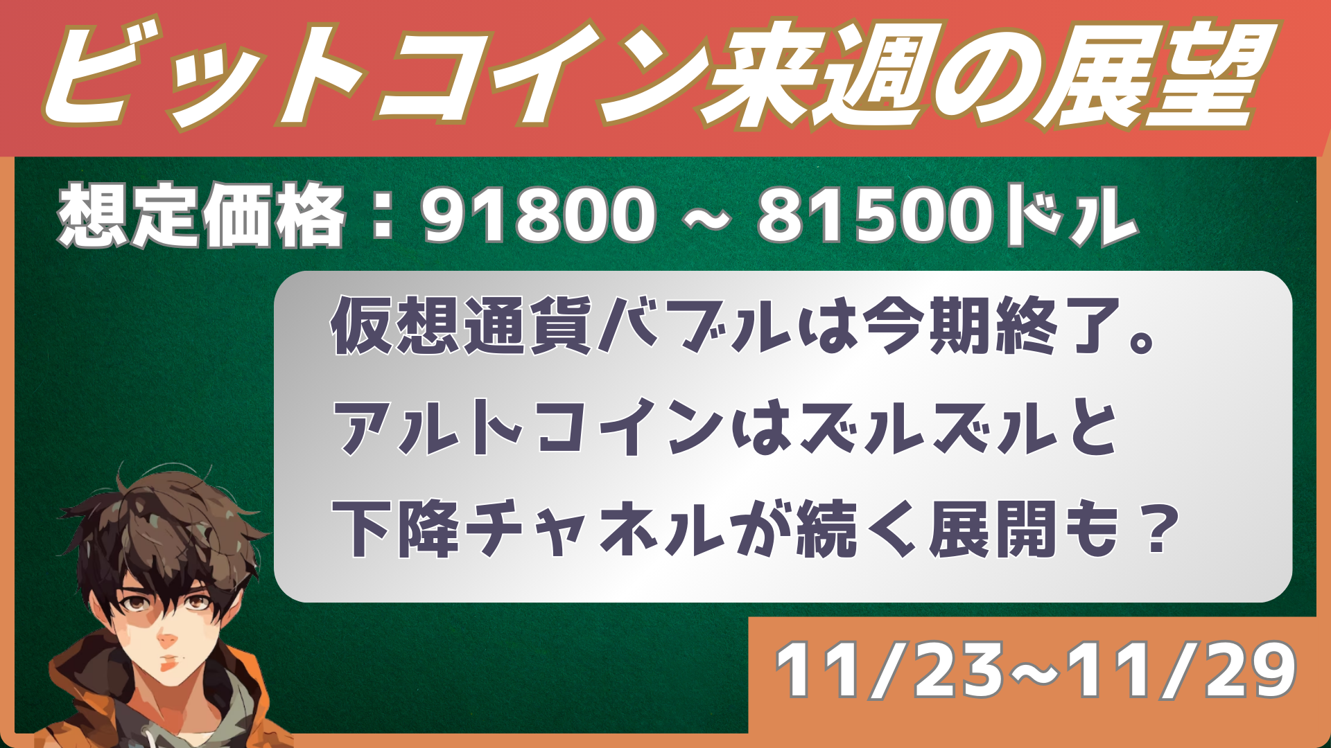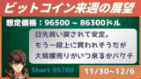 来週のビットコイン想定価格レンジは91800ドルから81500ドルです。ちなみに現在の価格は86700ドルで、先週から9700ドル安。BTC終了後の徹底的売り。