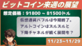 来週のビットコイン想定価格レンジは96500ドルから86300ドルです。ちなみに現在の価格は91300で、先週から4600ドル高。まずは下げ止まって価格回復してくれてよかった。