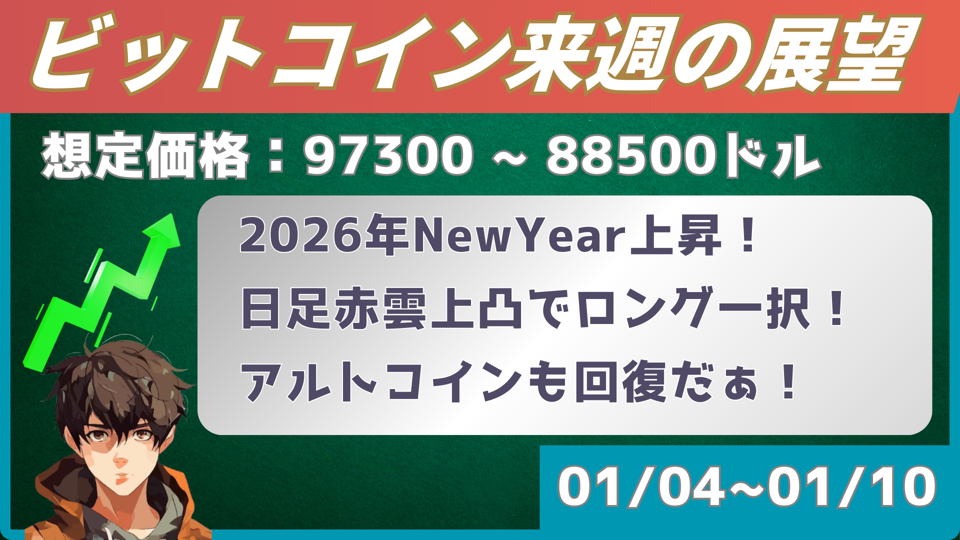 期待以上に年初買いが入り続けているビットコイン。アルトコインもXRPリップルやSUIスイなどが好調です。日足赤雲突入でかなりの上昇があるかも?