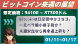 来週のビットコイン想定価格レンジは97300ドルから88500ドルです。ちなみに現在の価格は91700ドルで、先週末から3900ドル高の久々回復基調。