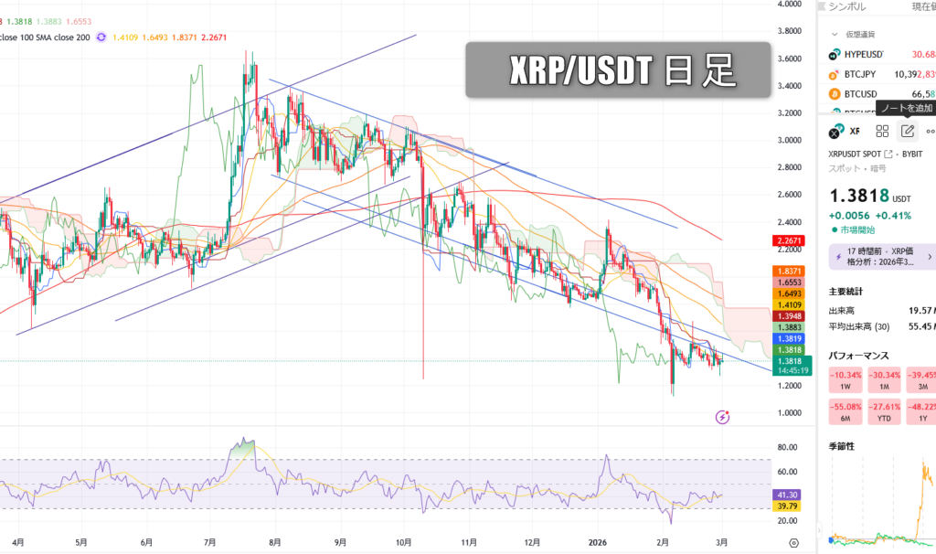 今週もXRPリップルの日足チャートを用意しました。